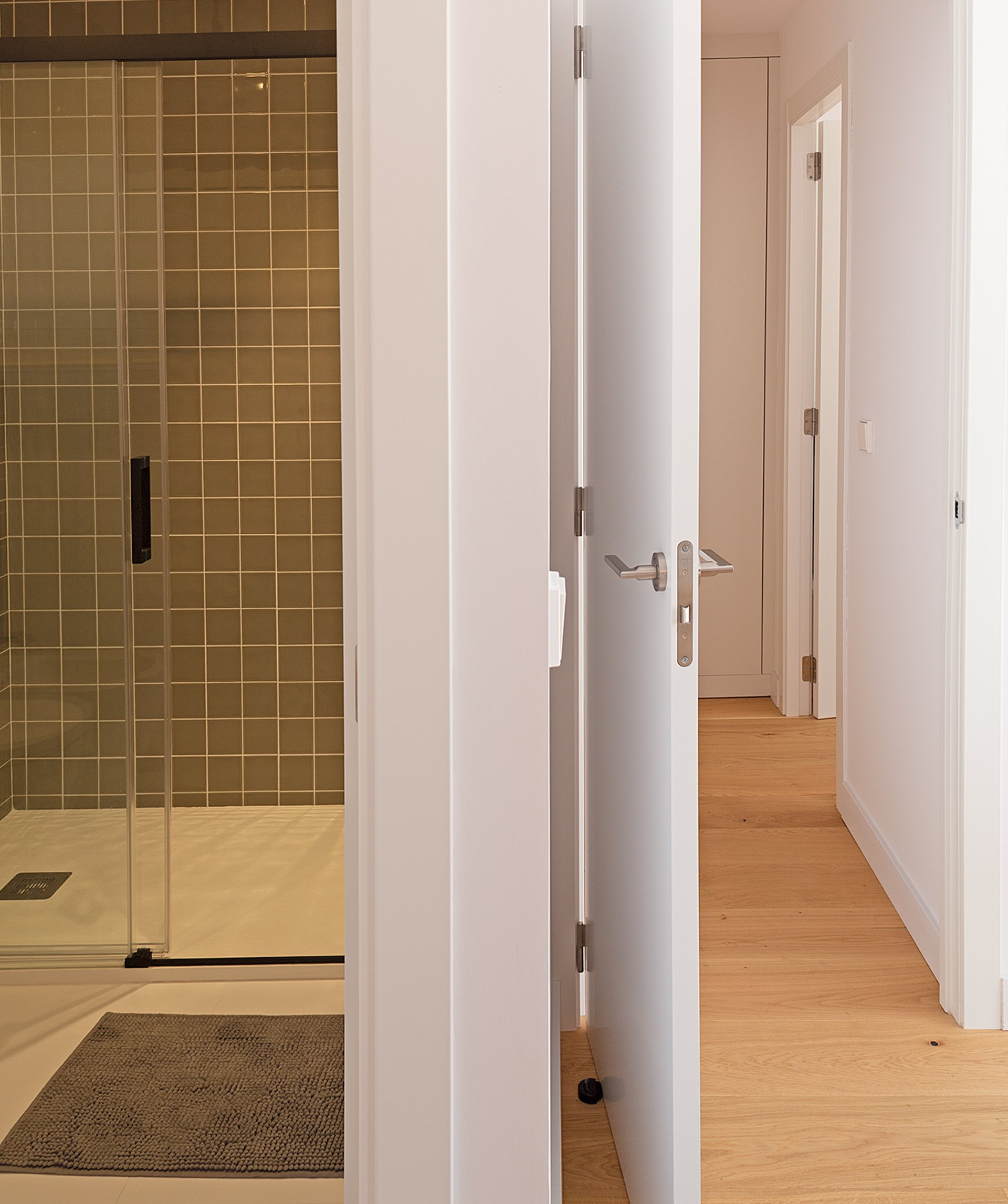 Functionally, a large day area opens to the bustle of the street, while the two bedrooms are oriented towards the great lung of the block, where the rising sun offers us the possibility of dispensing with the alarm clock.