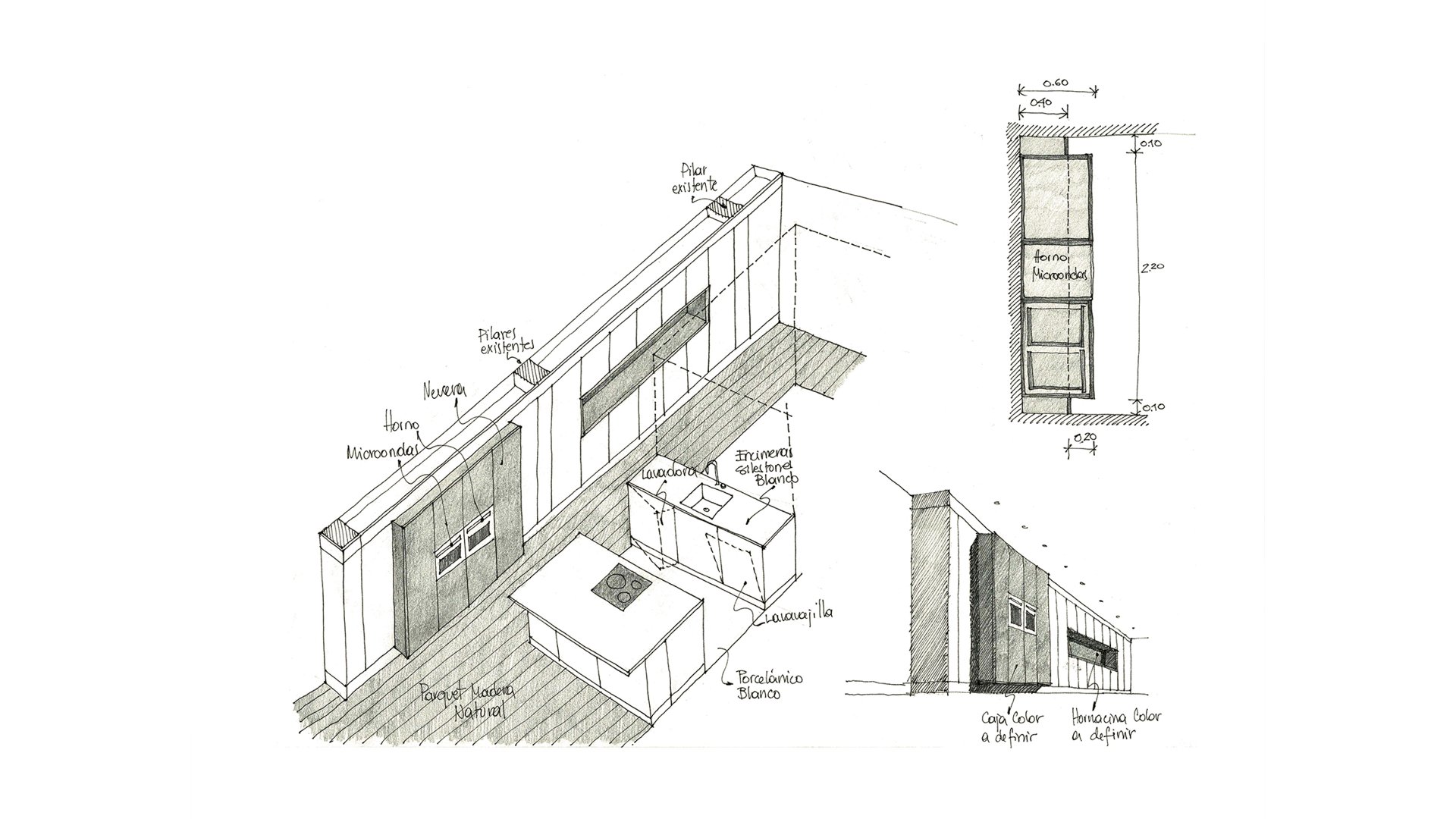 The project was born from the implementation of a multifunctional piece of furniture, which runs almost the entire depth of the apartment and transforms the interior of this apartment into a dynamic space with greater performance. Made up of lacquered wood panels and integrated furniture, its components were manufactured in La Rioja and assembled in-house.