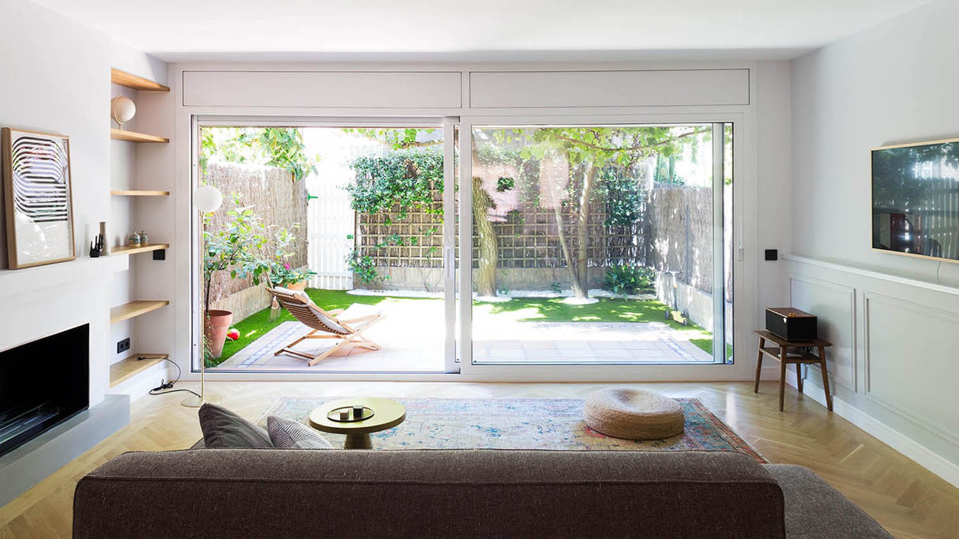 The first floor, all of it opens to the back garden, making its relationship with the exterior closer thanks to a large door window of more than 5 meters wide that goes from party wall to party wall.