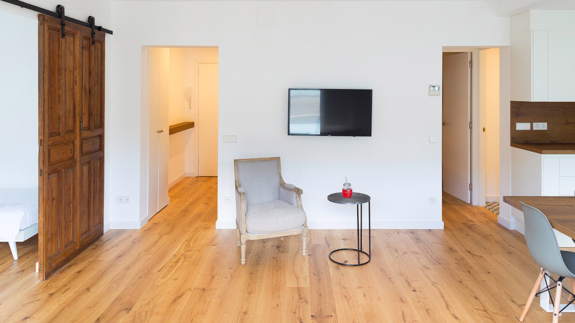 A Franco-Spanish couple, residing in Zurich, had long dreamed of their second home in Barcelona. So, as soon as they managed to free up a property, they called us to give it a fresh perspective, with an emphasis on the social space of the house. They were willing to place the bedrooms and service areas on the backburner, as long as their functional and storage needs were met.