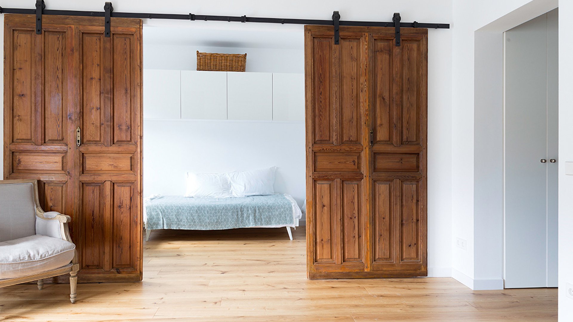 This significant concession allowed us to modify the existing compartmentalized layout and create a large, open-plan day zone—living room, dining area, and kitchen. This space, fully connected to the balcony, the southern orientation, and the green spaces of Putxet, accommodates the main activities of the home. It even allows for the children’s bedroom to be incorporated: when the wooden double sliding door is opened, the three U-shaped beds of the children’s room transform into a large sofa, decompressing the space for larger gatherings.