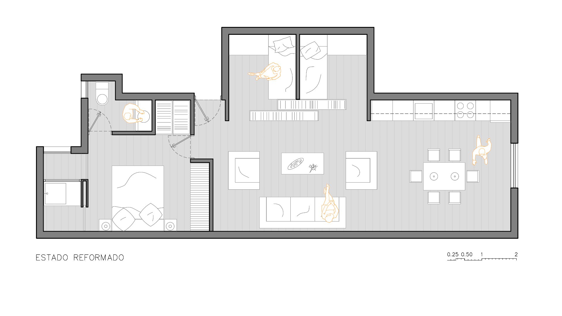 The distribution proposal arose from the “functional needs” of the future owners and from understanding their own conception of home: an open and bright space to enjoy with friends.