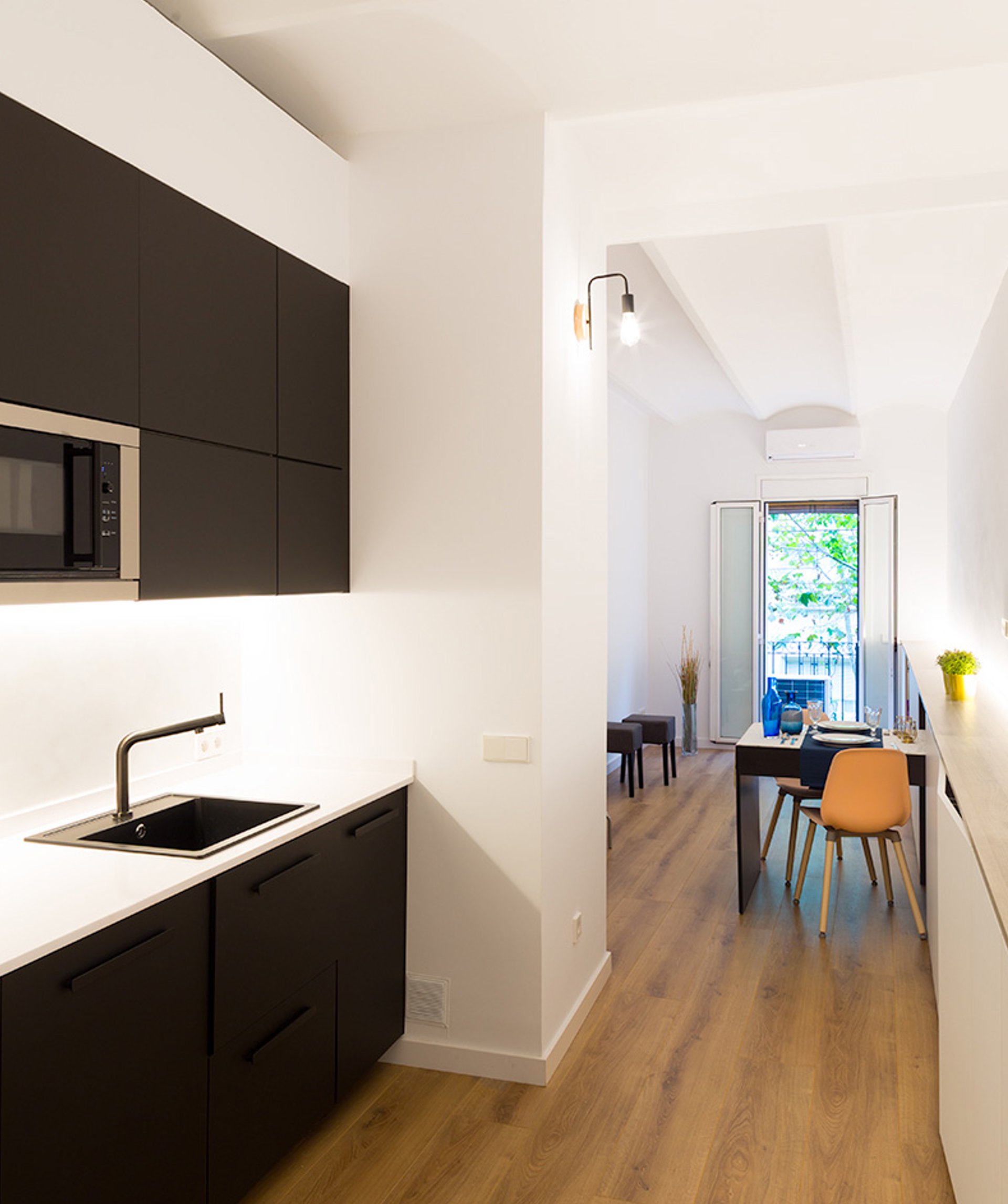 Este proyecto nace de la voluntad de sus propietarios de tener una «zona de día» amplia y abierta, que les permitiera tener estancias cortas y confortables, en un piso de 36m2, cuando estaban acostumbrados a vivir en más de 150m2.