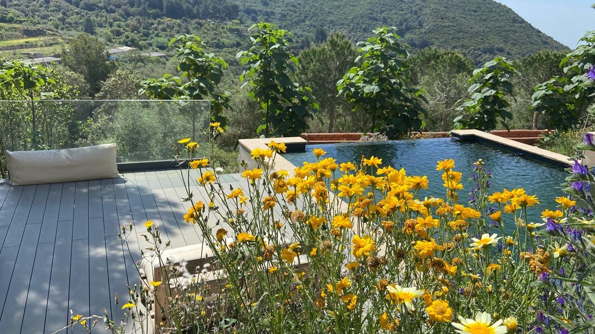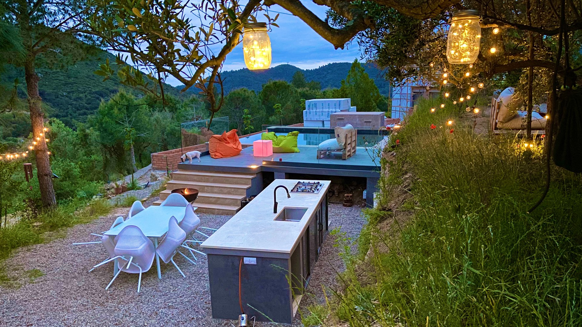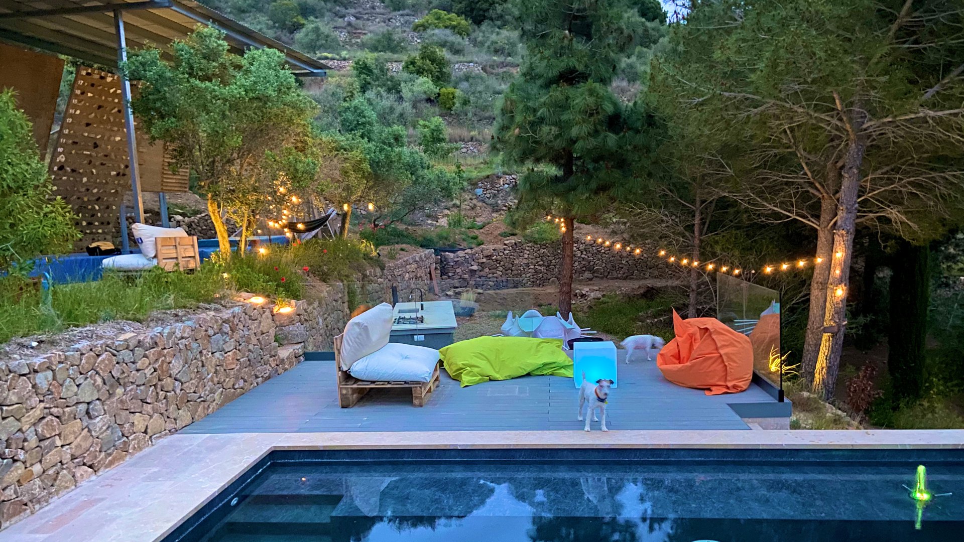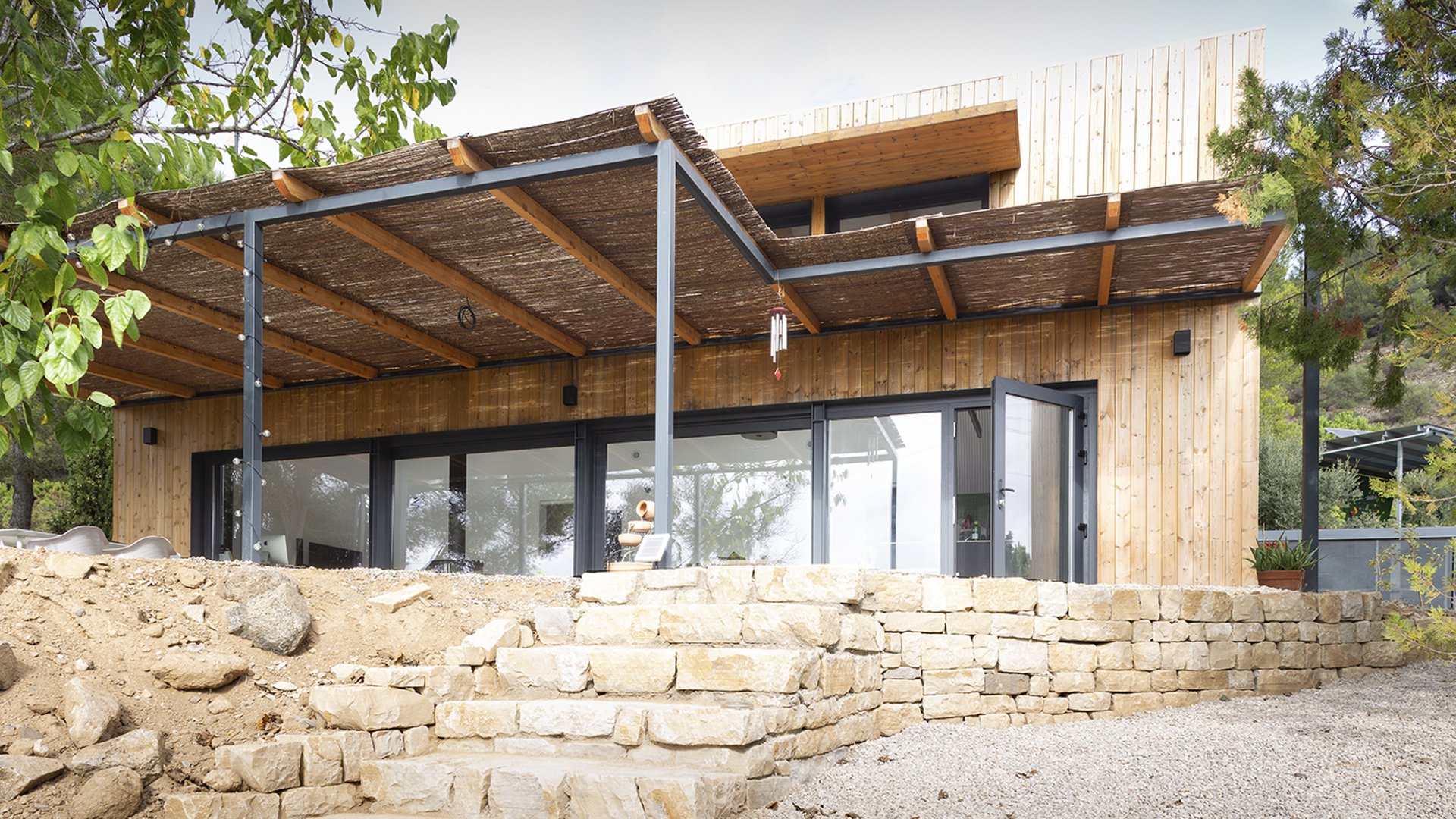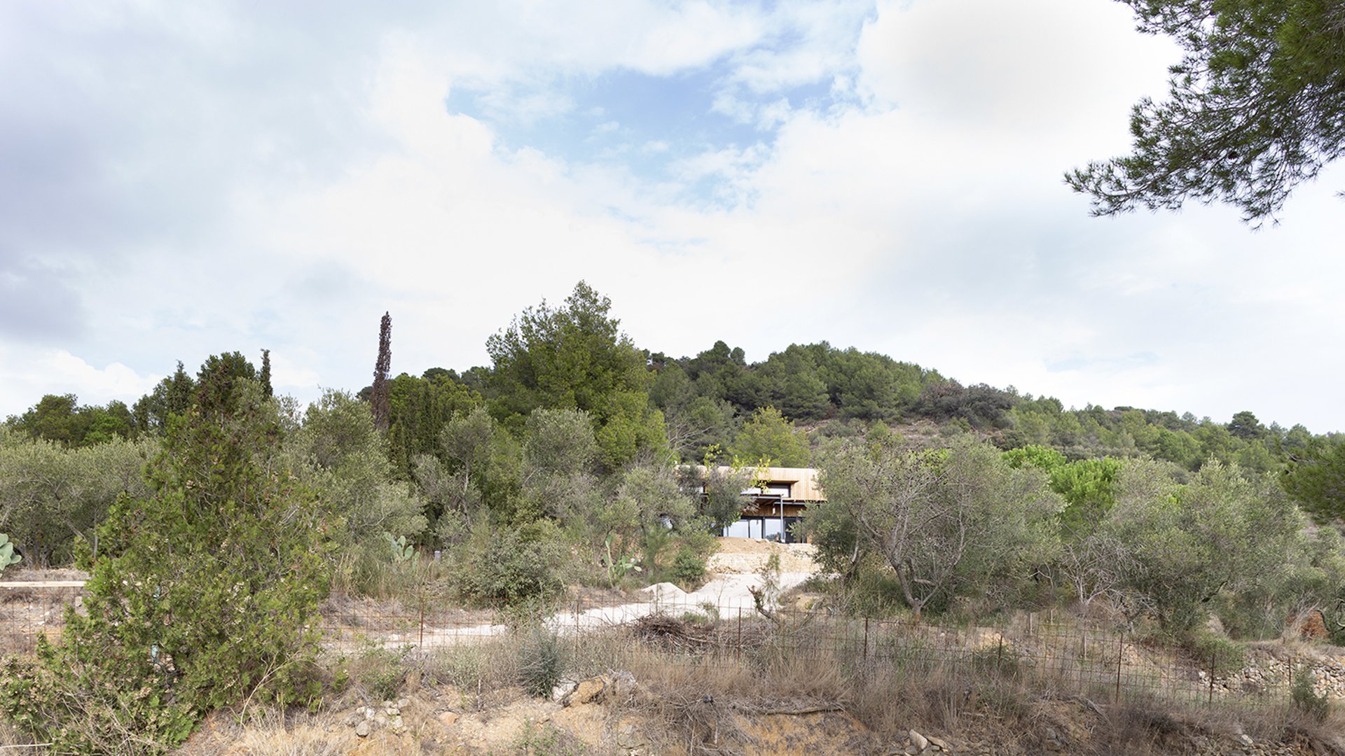 Alforja tiene una parcela de 20.000m2 de pronunciada y abancalada topografía, y la casa se sitúa en el tercio más bajo de la finca.