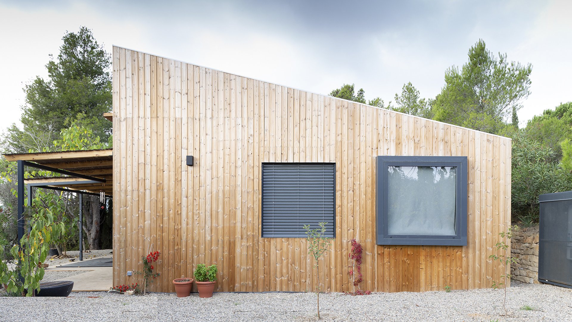 La inexistencia de suministros a pie de la finca, obligaron a diseñar una vivienda autosuficiente en términos de agua, energía eléctrica, calefacción y aguas residuales.