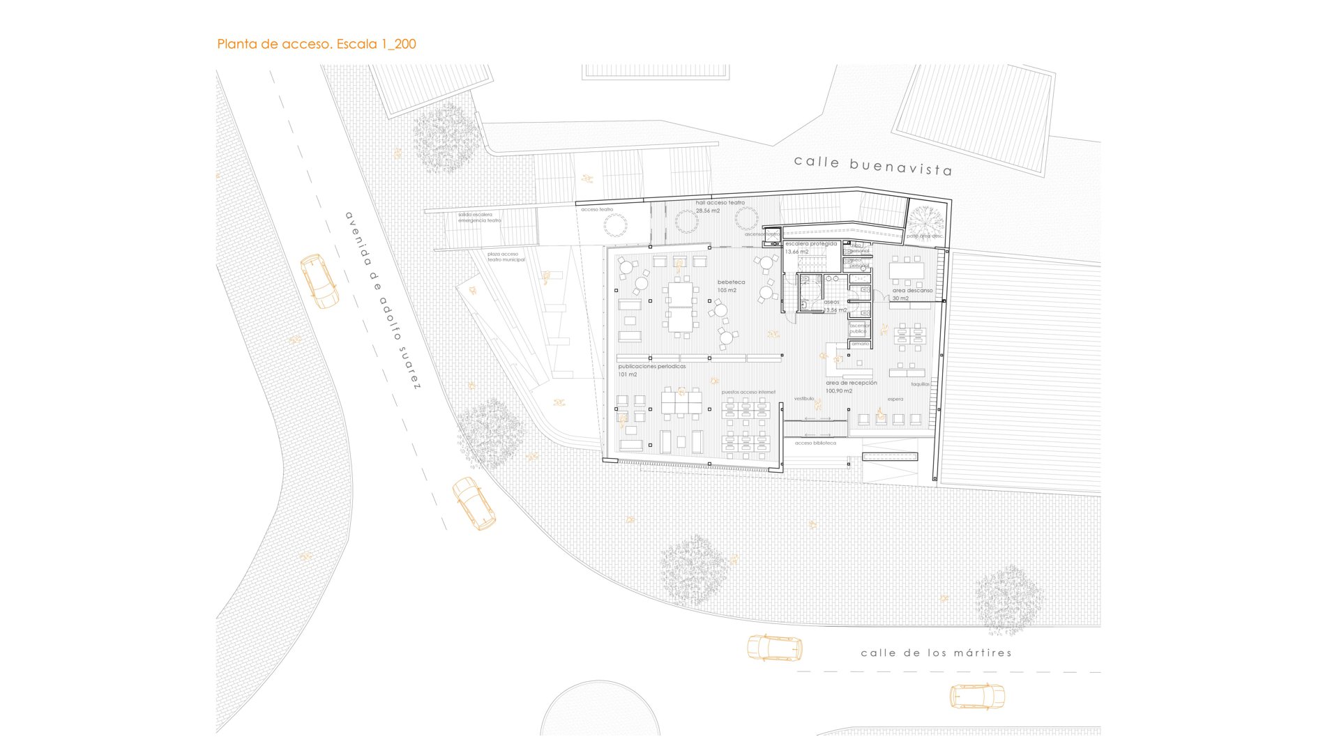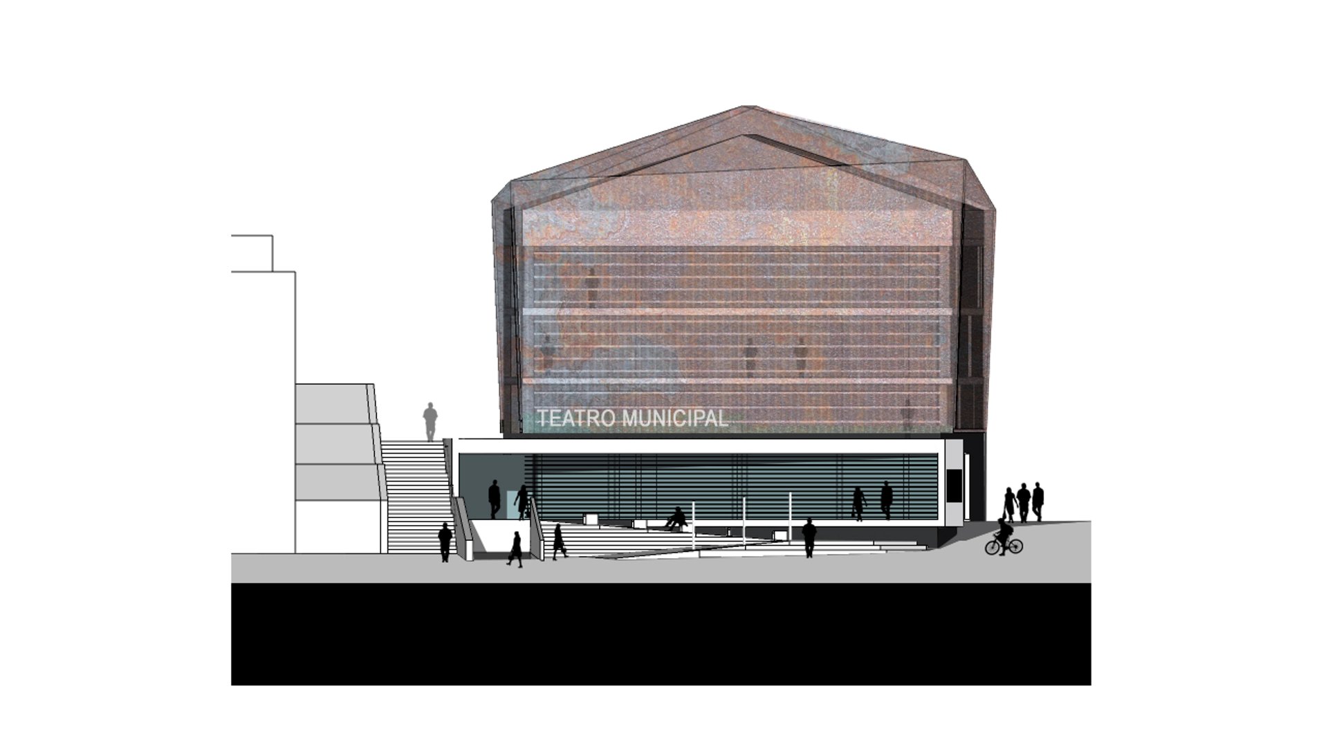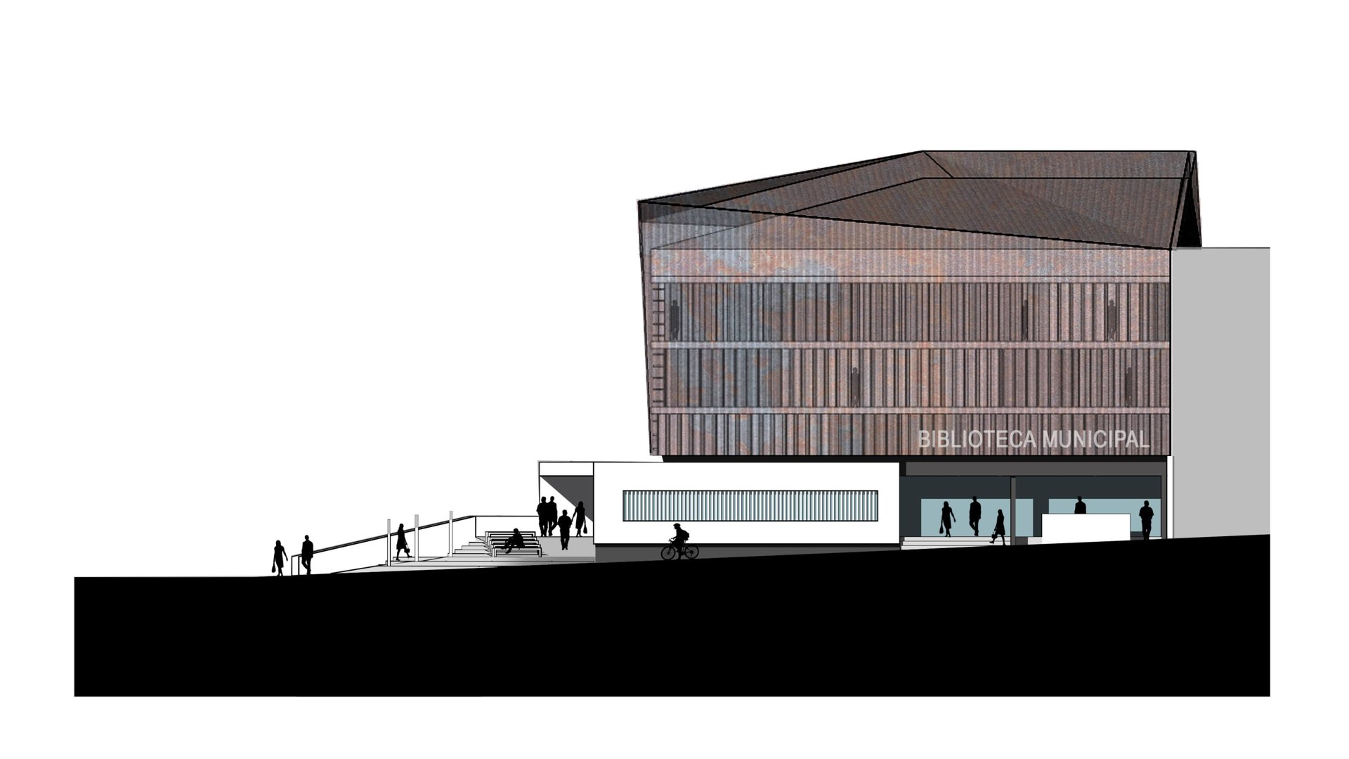 El edificio propuesto, es resultado de la voluntad de independizar funcionalmente el acceso de Biblioteca y Teatro Municipal.