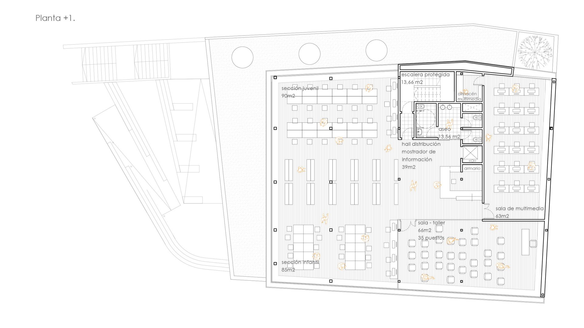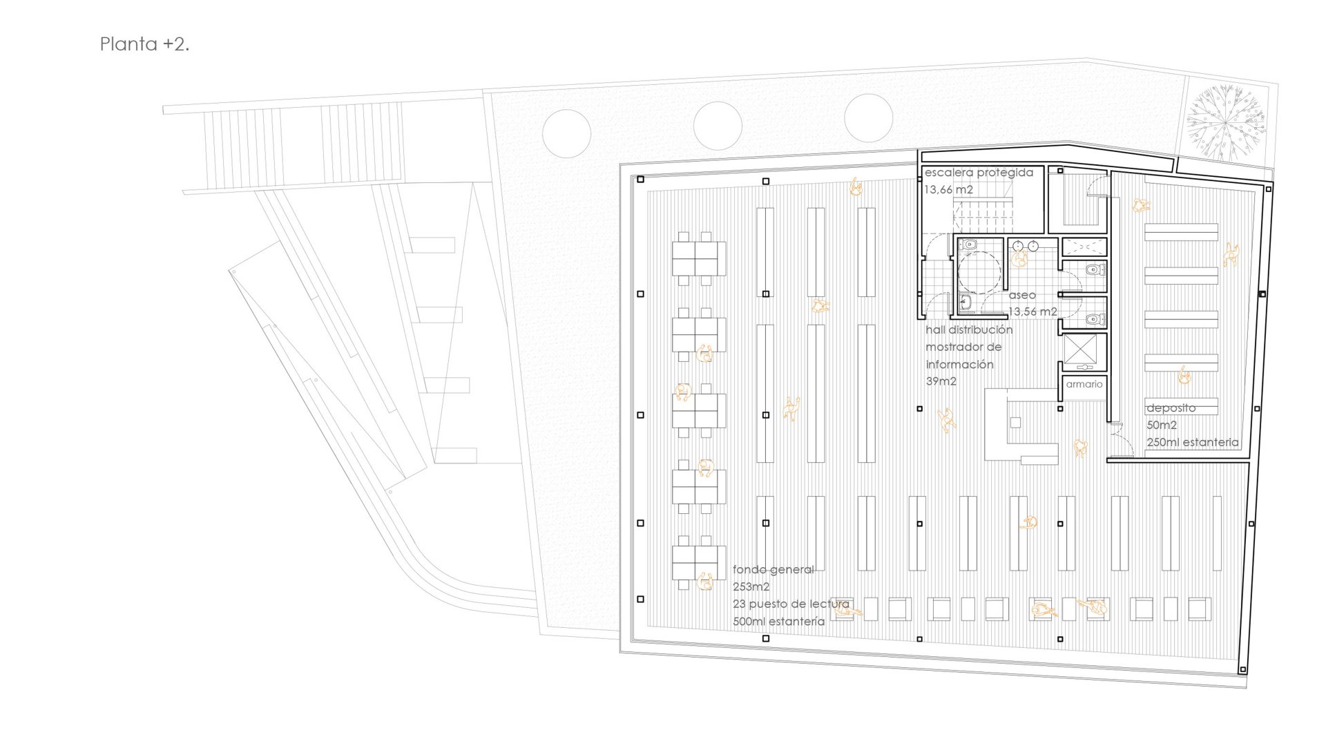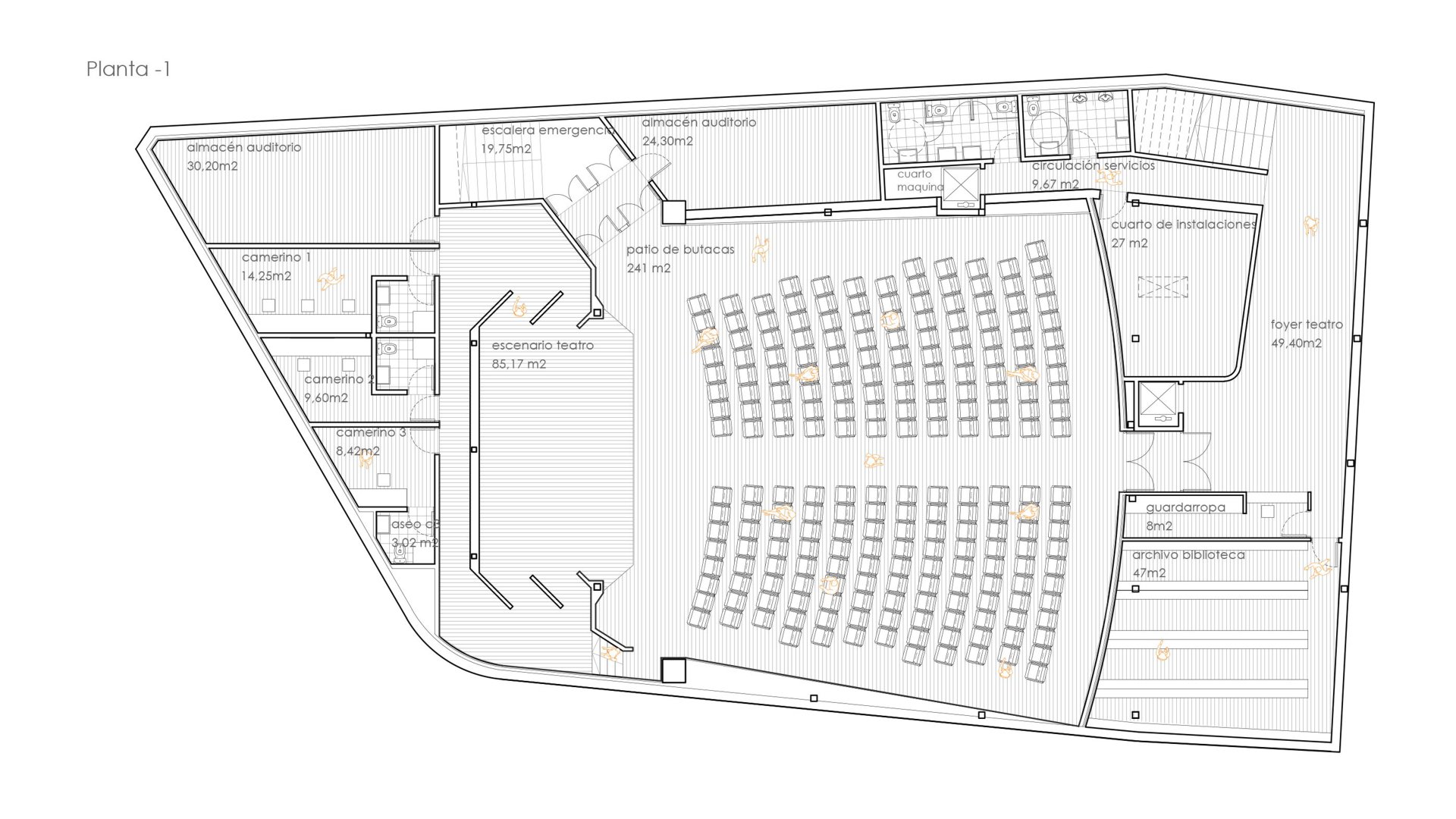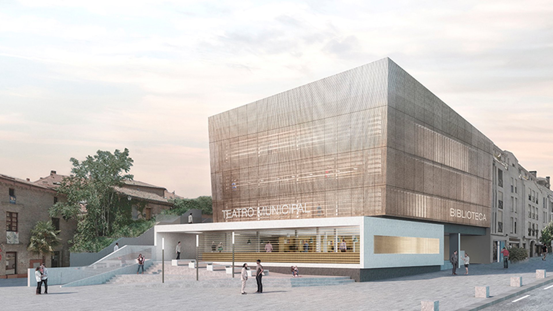 El edificio propuesto, es resultado de la voluntad de independizar funcionalmente el acceso de Biblioteca y Teatro Municipal.