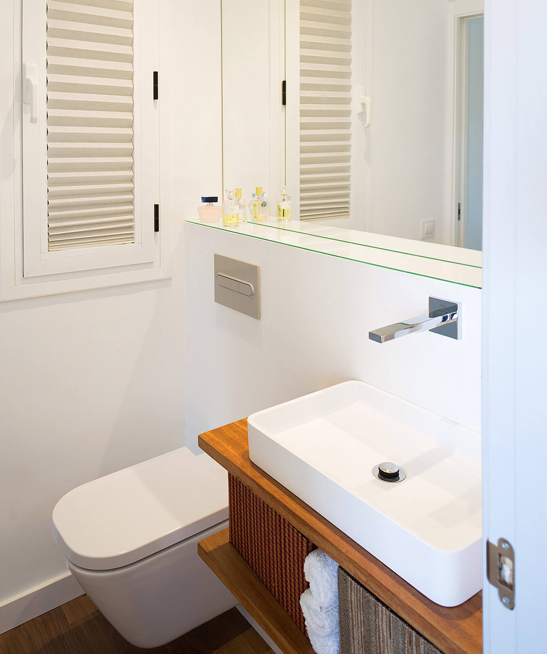 La posición del cuarto de baño, permite un doble funcionamiento: como aseo de cortesía, y como cuarto de baño en suite.