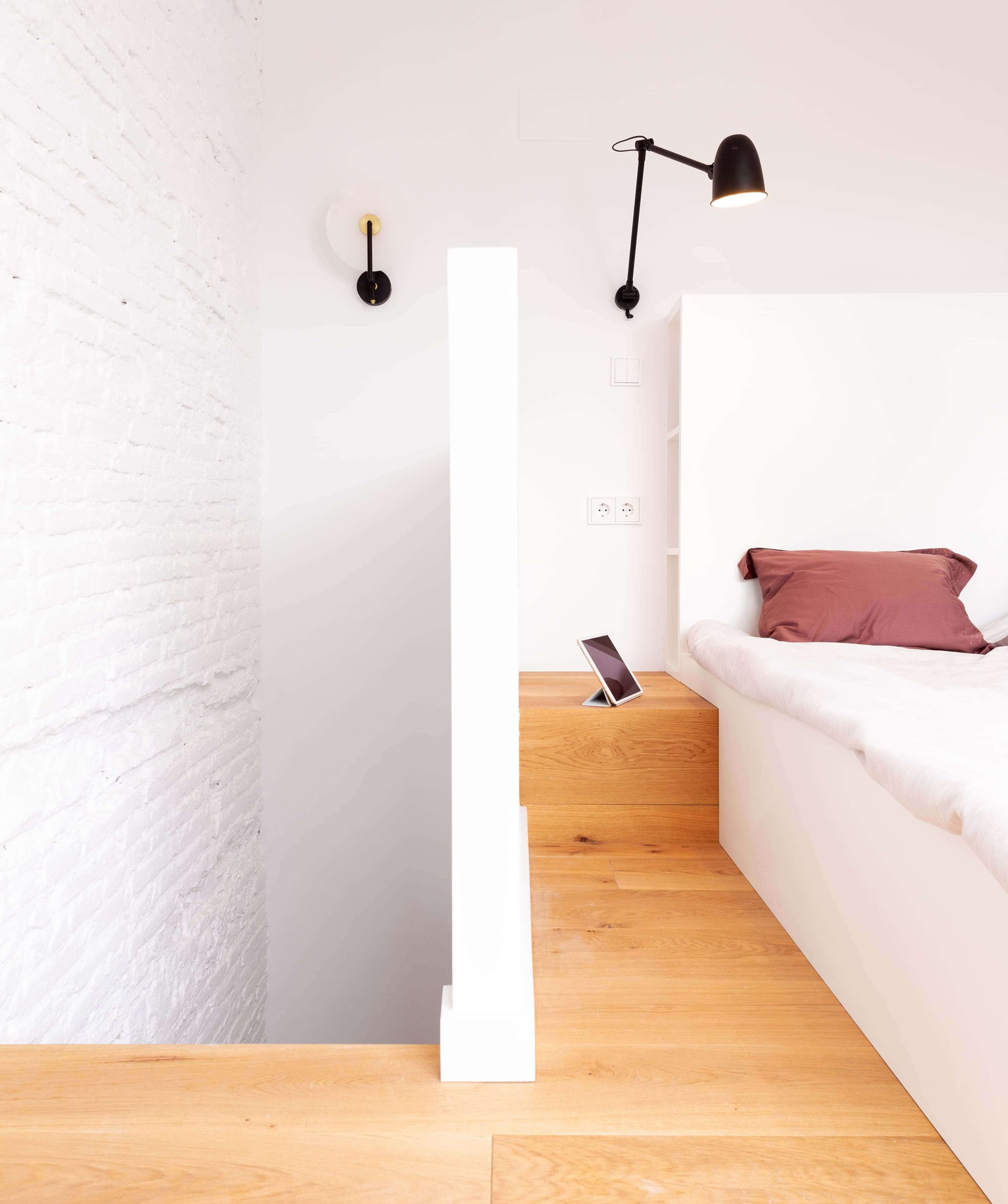 En nuestra búsqueda constante de conseguir una perfecta sintonía entre el alma del lugar y de quien la habita, hemos preparado un lienzo blanco que envuelve el espacio en toda su magnitud. Algunos muros desnudos y la estructura vista nos recuerdan la edad de la finca y los avatares por los que ha transitado. Completan la paleta cromática, grises que en ocasiones viran al azulado y toques de madera natural que confieren cálidos detalles de luz.