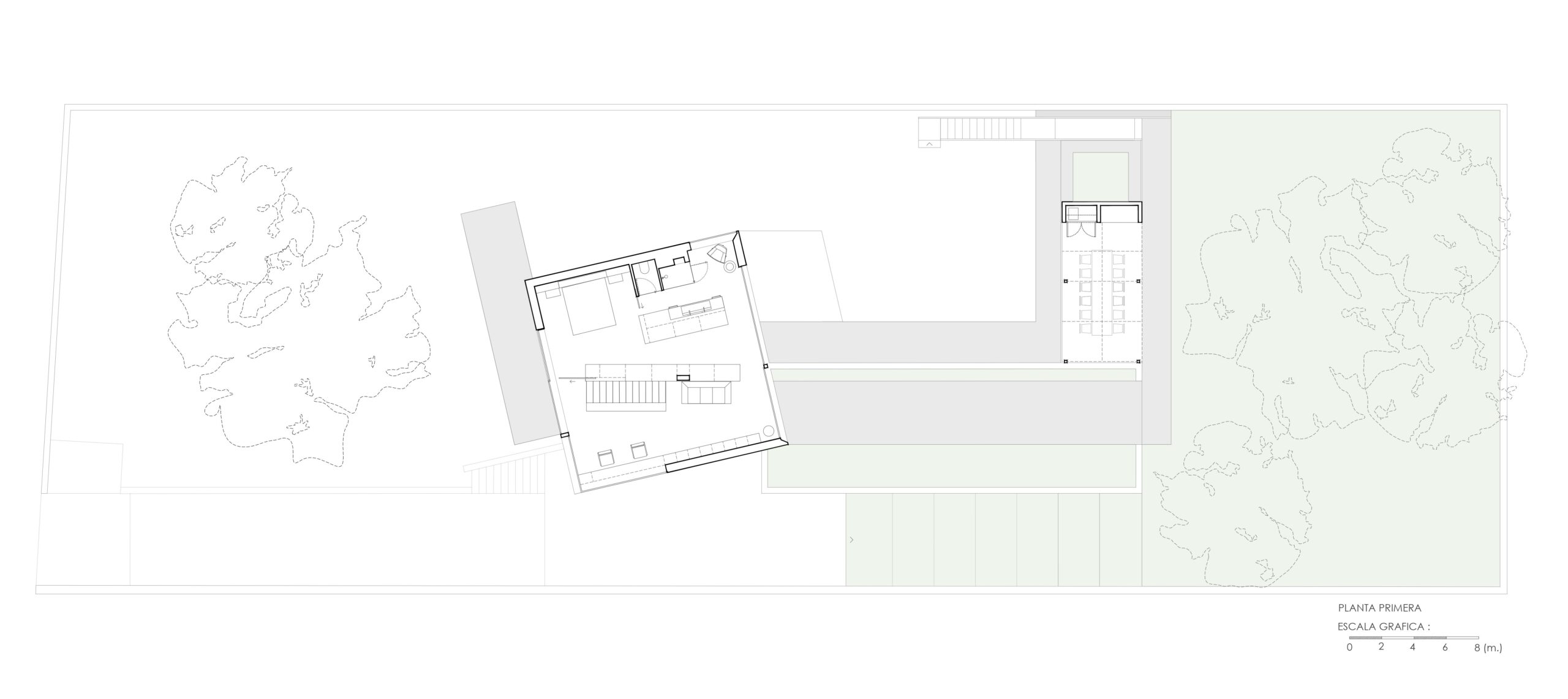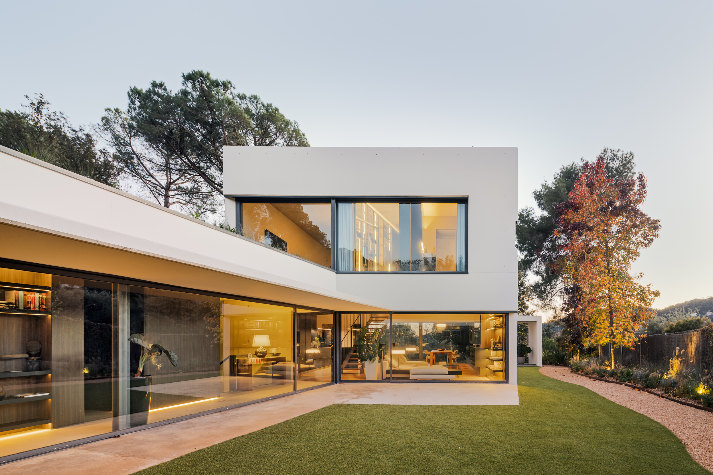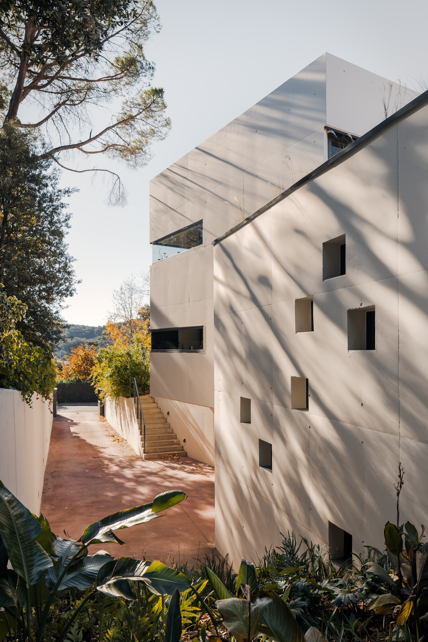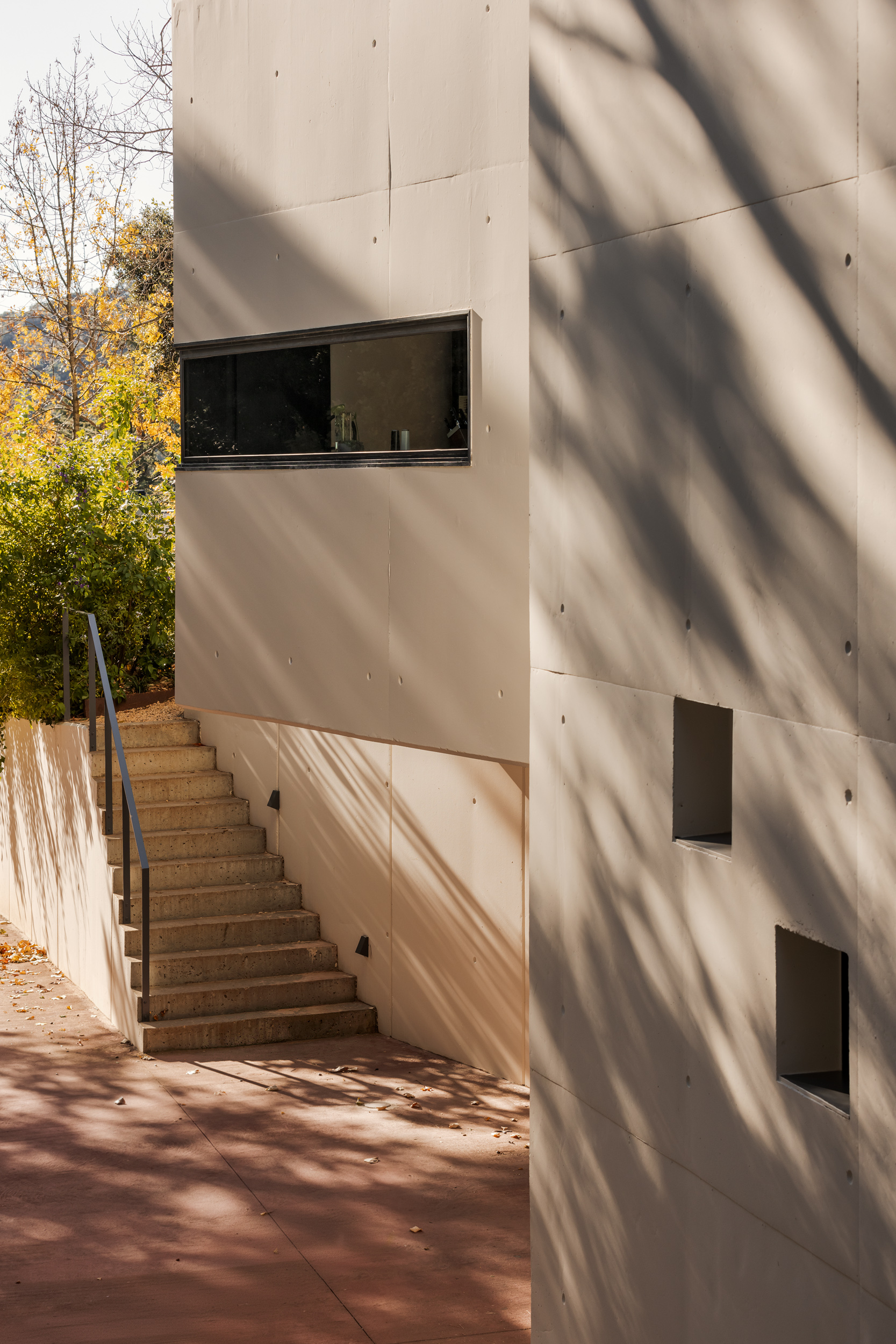 Proyectada en 2001 por Francesc Bacardí y Segués en una parcela de pronunciada orografía, la vivienda se organiza en dos cuerpos independientes unidos mediante un único punto de contacto. Esta disposición genera una secuencia de espacios que articulan tanto el acceso como la relación con el jardín.