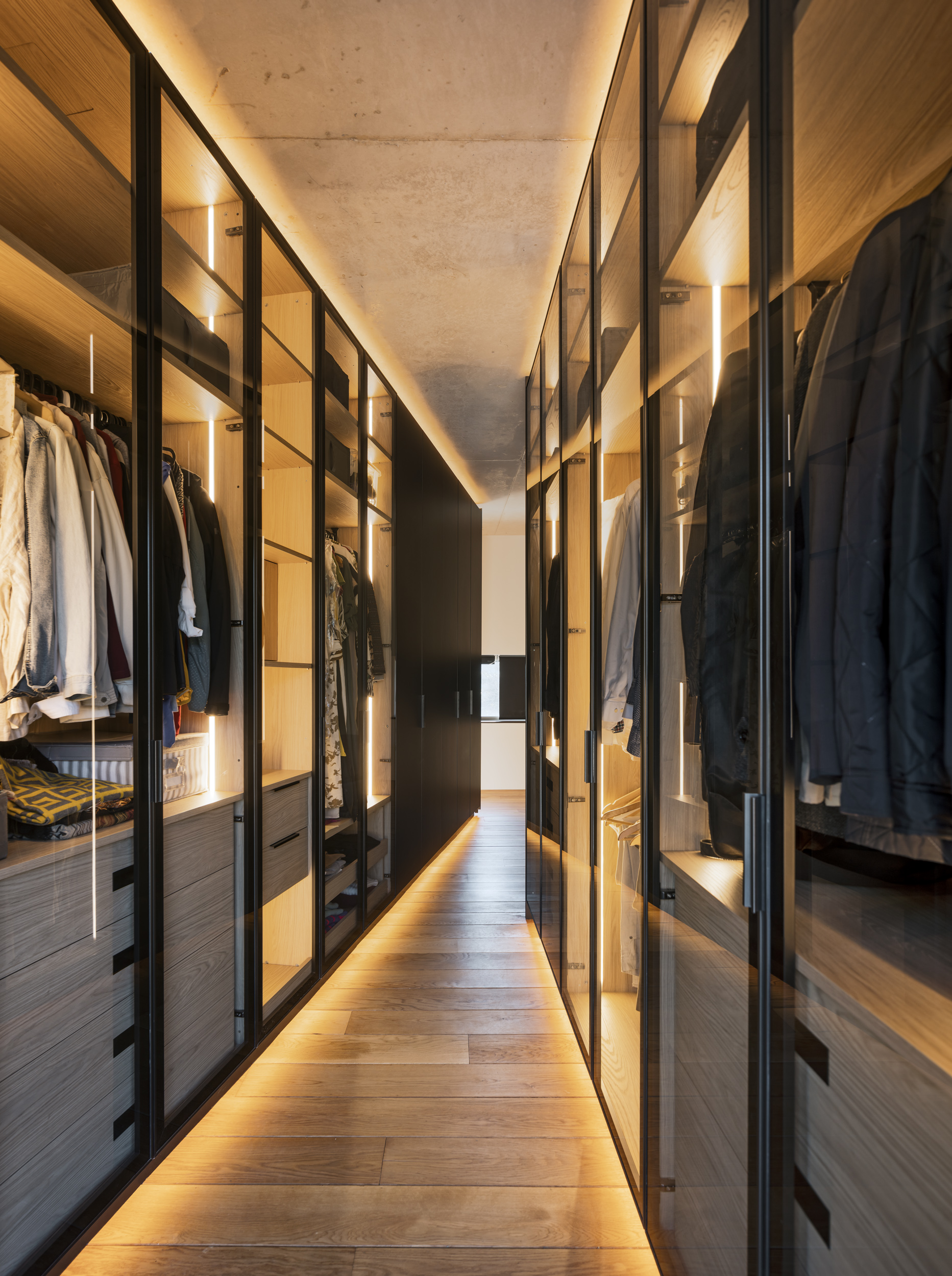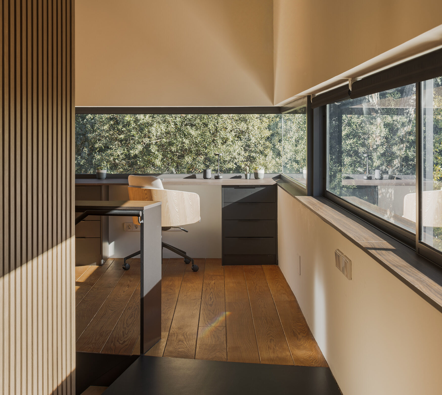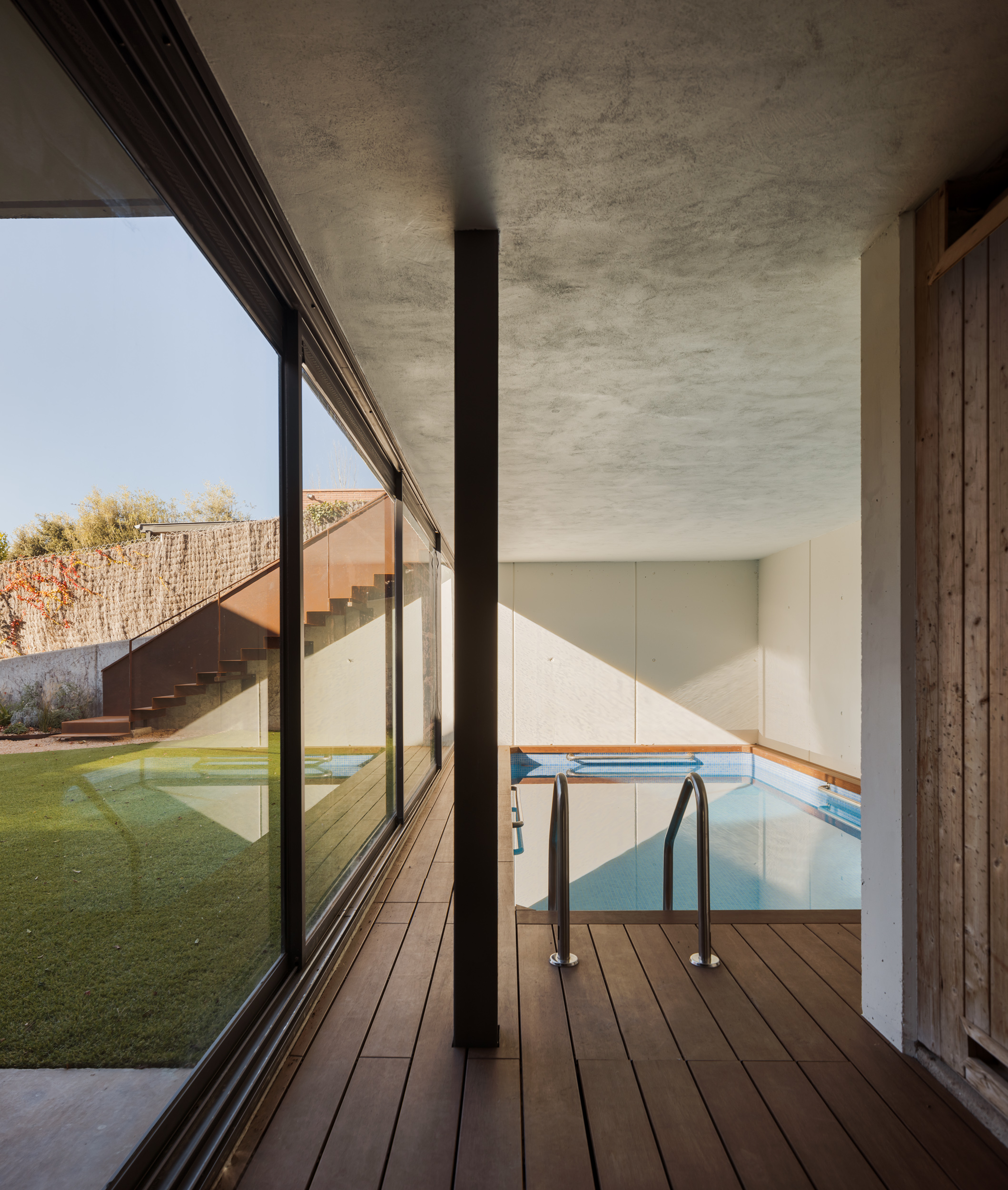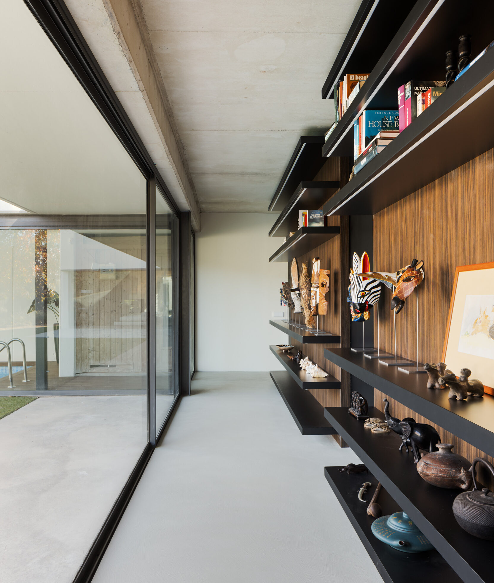 La cuidada implantación de la casa en el terreno permite disfrutar de amplias vistas del entorno, al tiempo que genera espacios exteriores más íntimos. Este equilibrio fue determinante para que el nuevo propietario, compartiendo el entusiasmo con Claudio González, decidiera adquirir la vivienda y confiarnos tanto el proyecto como la gestión de la obra. Fue, además, uno de los últimos proyectos de Claudio, que culminó con el rigor y la sensibilidad que siempre le caracterizaron.
