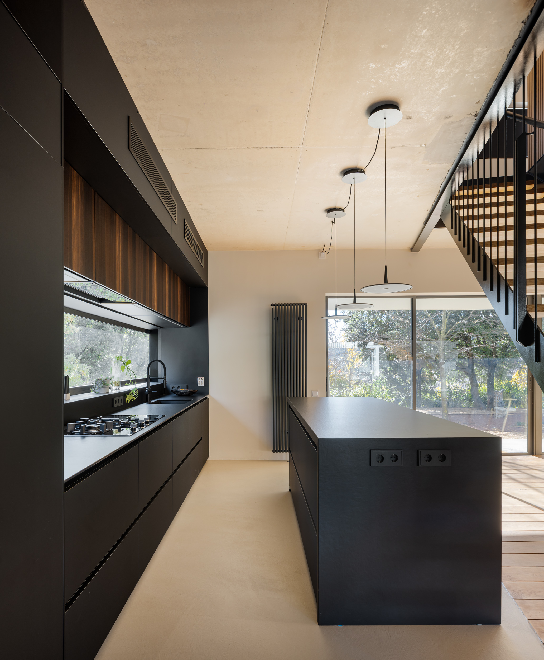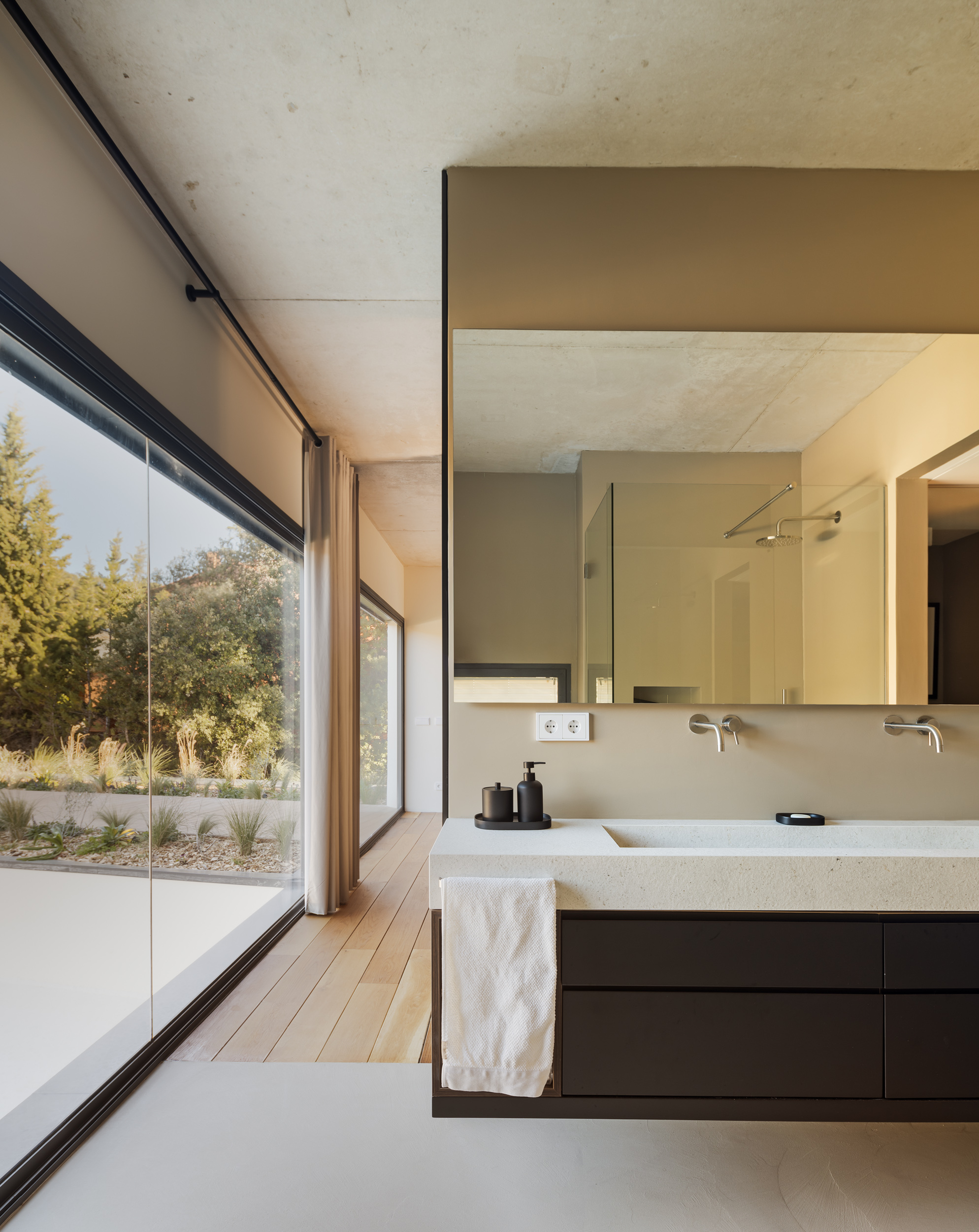 El proyecto se completa con la intervención paisajística de Guillermina Lario, colaboradora de Gokostudio, que refuerza la relación entre arquitectura y entorno mediante un lenguaje natural y contenido.
