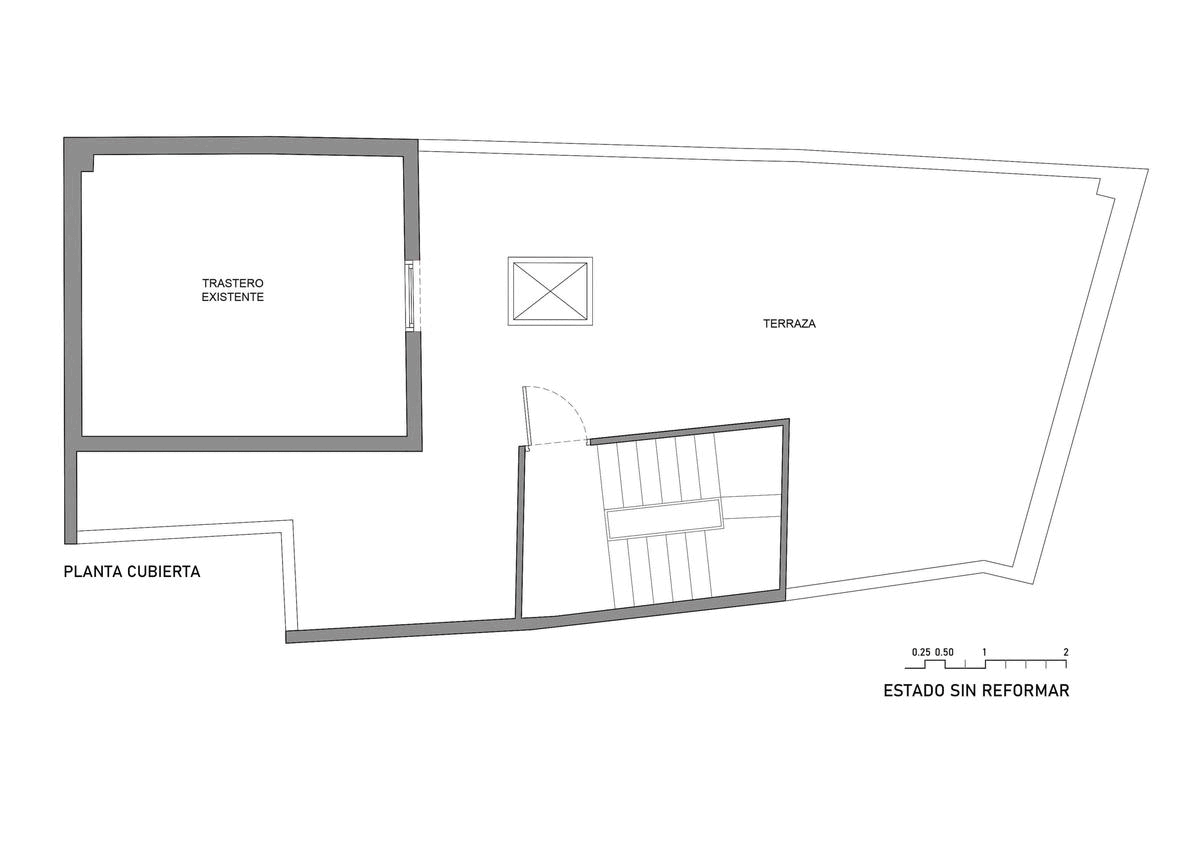 La planta tercera es la estrella de la corona. Aprovechando el antiguo almacén de la terraza, se dota a la vivienda de la última planta de un espacio de estudio-trabajo-reunion, en directa relación con una gran terraza, desde donde se tienen unas magníficas vistas de los tejados del casco histórico.
