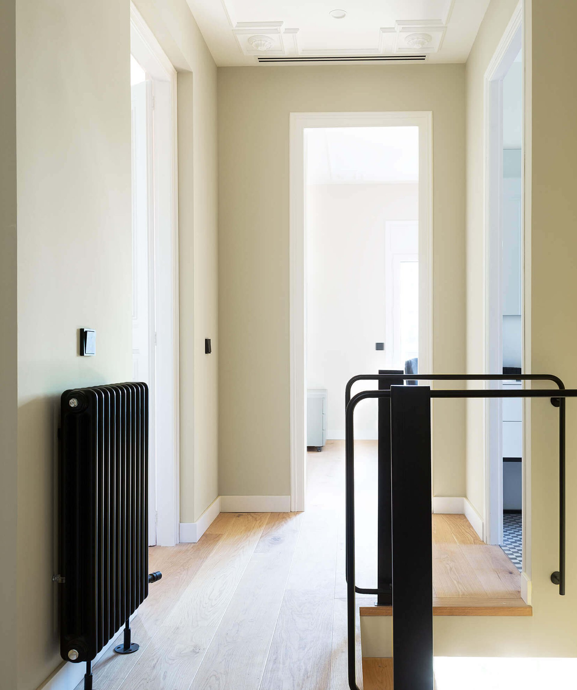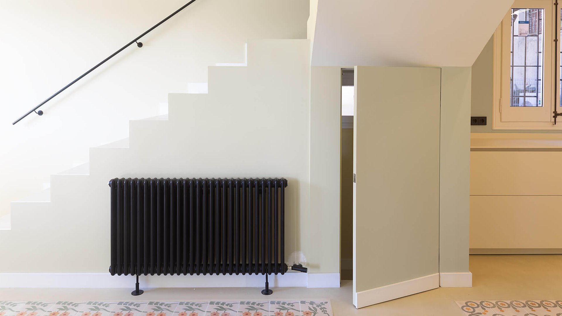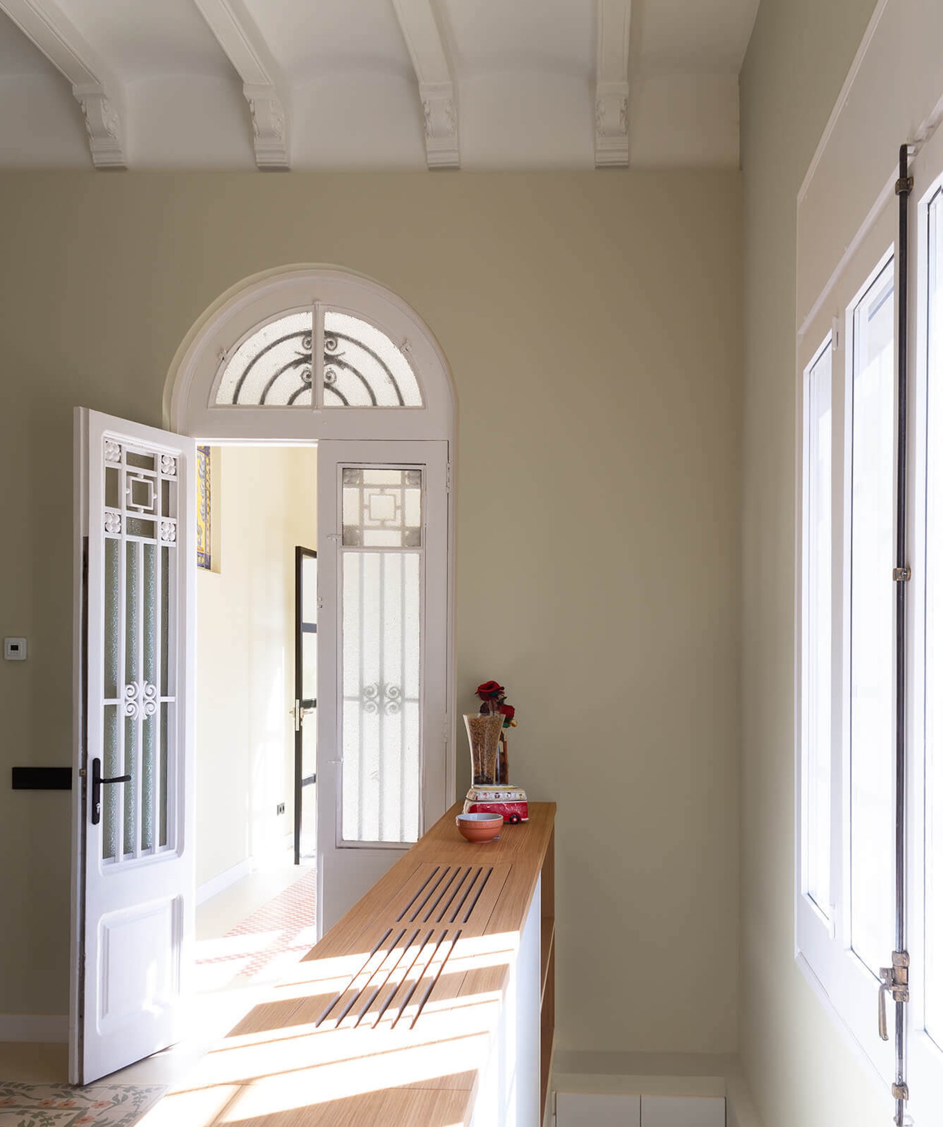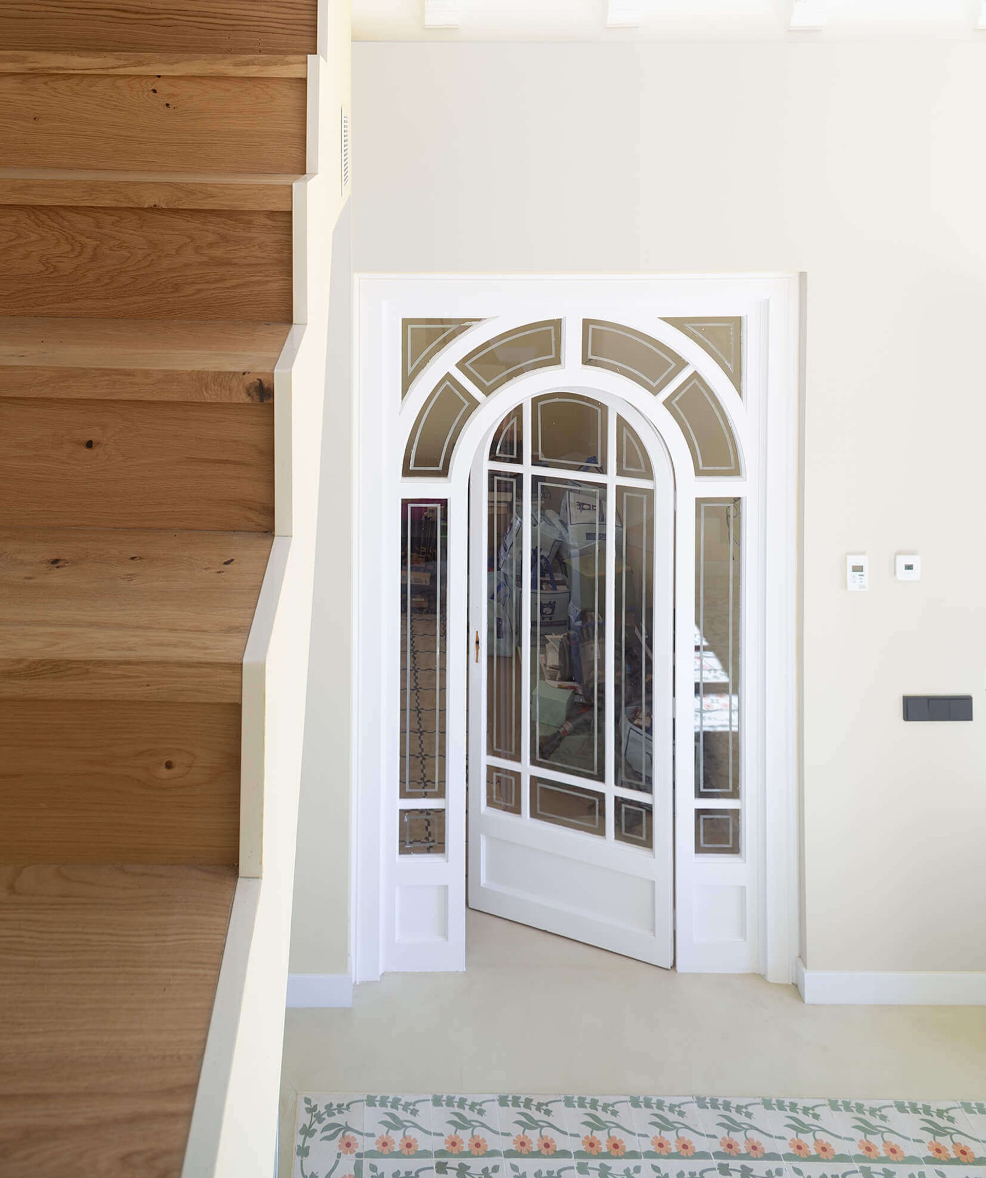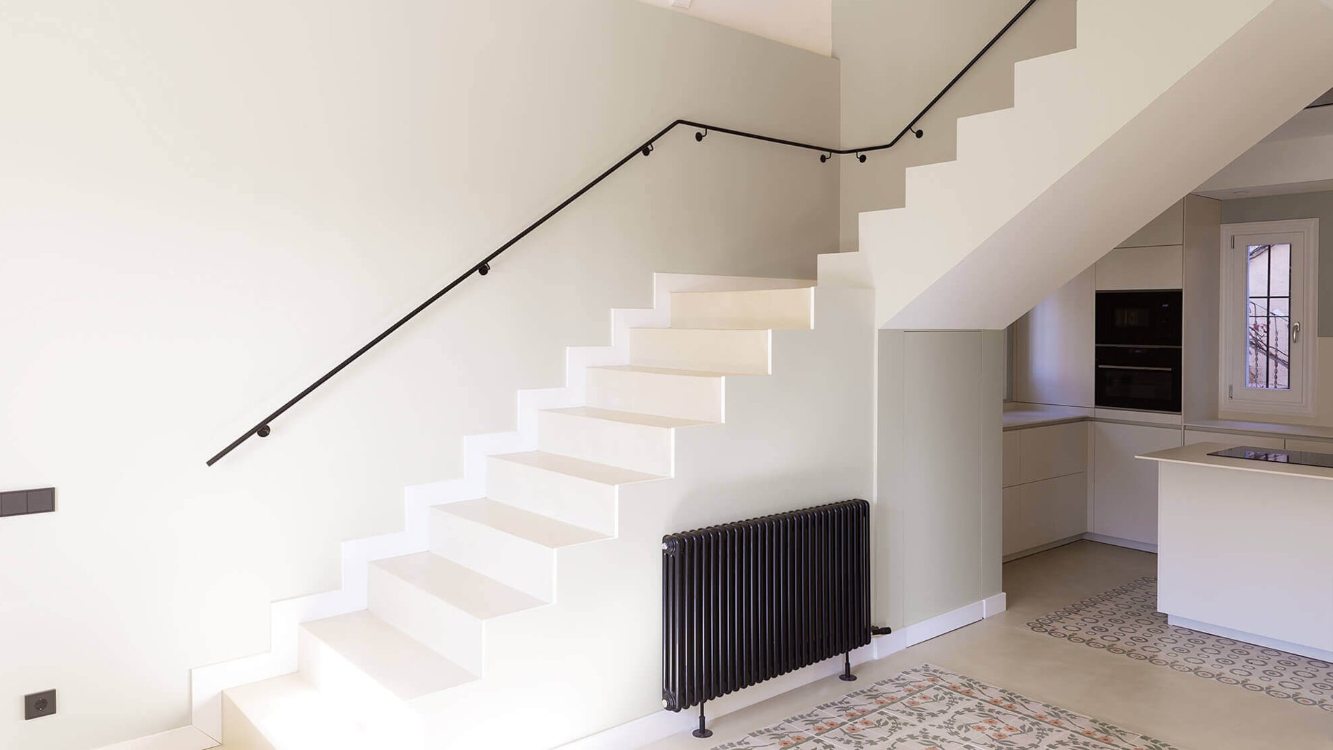 En la reformulación del espacio interior, el cambio de posición de uno de los tramos de la escalera, permite potenciar la unificación de usos, diluyendo antiguos límites, ganando en visuales cruzadas interiores y captando la luz natural del sur que llega hasta la fachada norte.