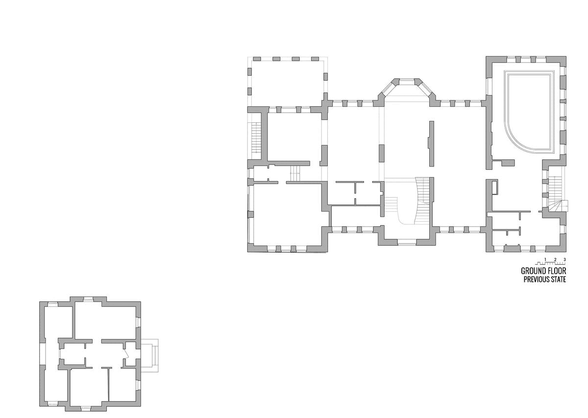 En la planta baja, se sitúan las cocinas, el comedor, las áreas de reunión y habitación de invitados. Mientras que en la planta primera se encuentran la biblioteca y todos los dormitorios de los miembros de la familia.